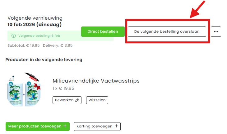 Hoe sla ik mijn volgende bestelling over?Bijgewerkt 6 days ago
